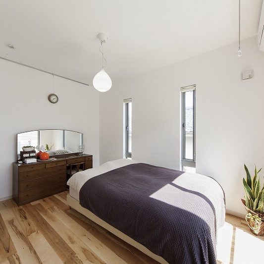 - 内装は壁に漆喰を、床には無垢のフローリングを採用し、ナチュラルで気持ちの良い空間になっています。