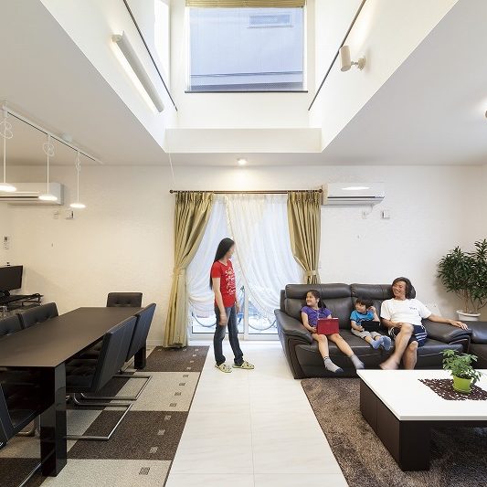 子育て世代の7人大家族がのびのびと暮らす多目的ペントハウスのあるRC住宅。