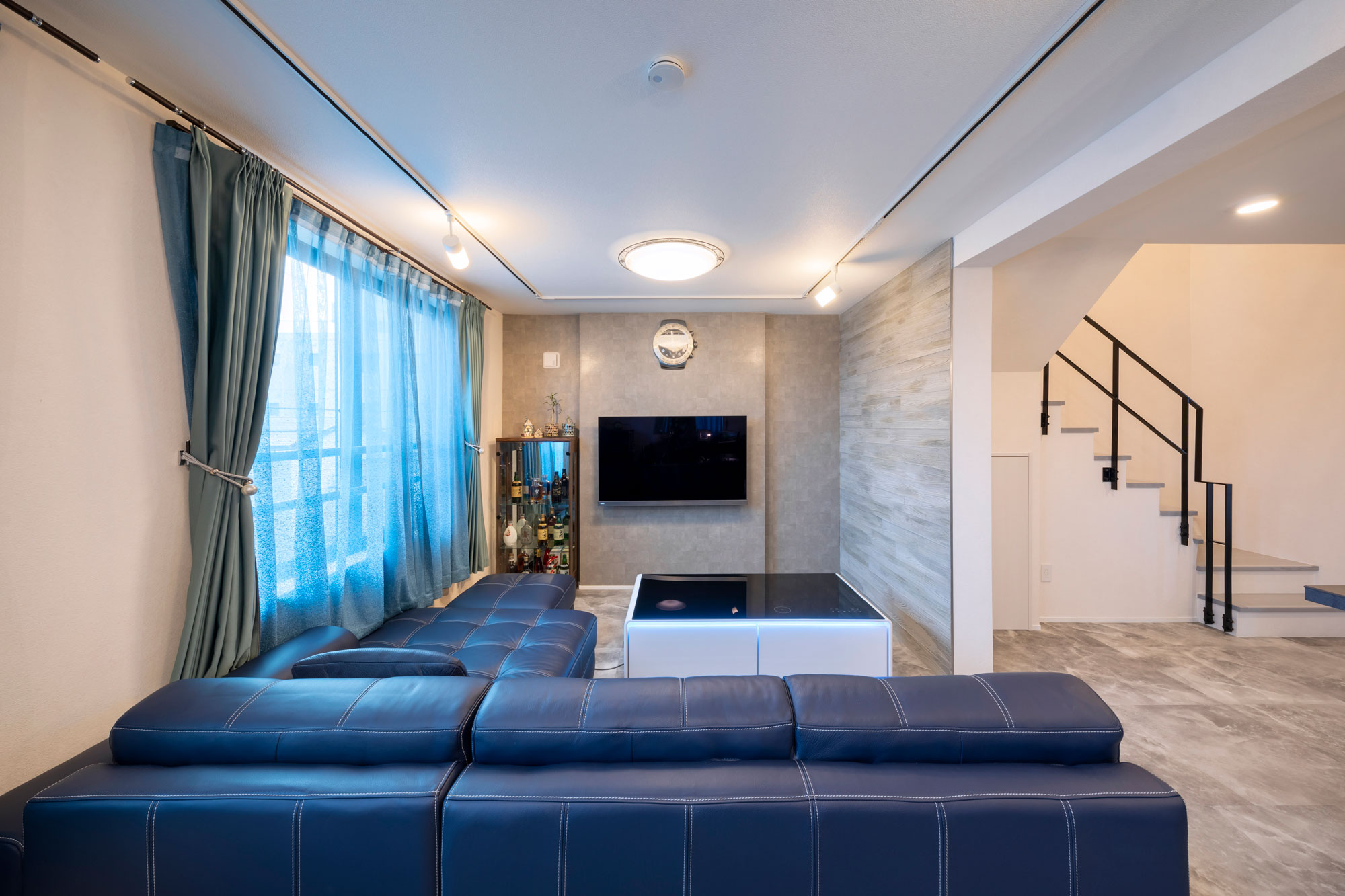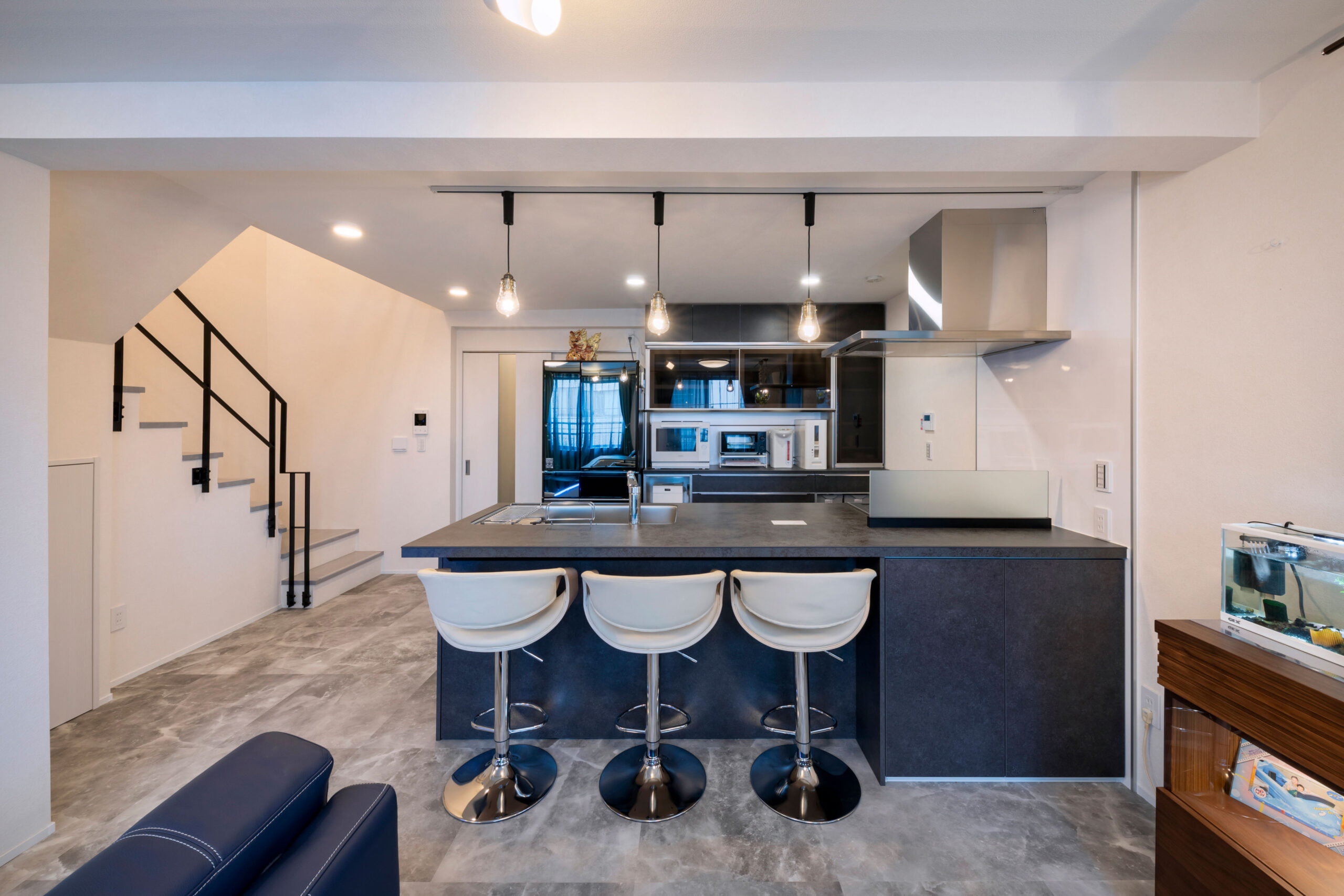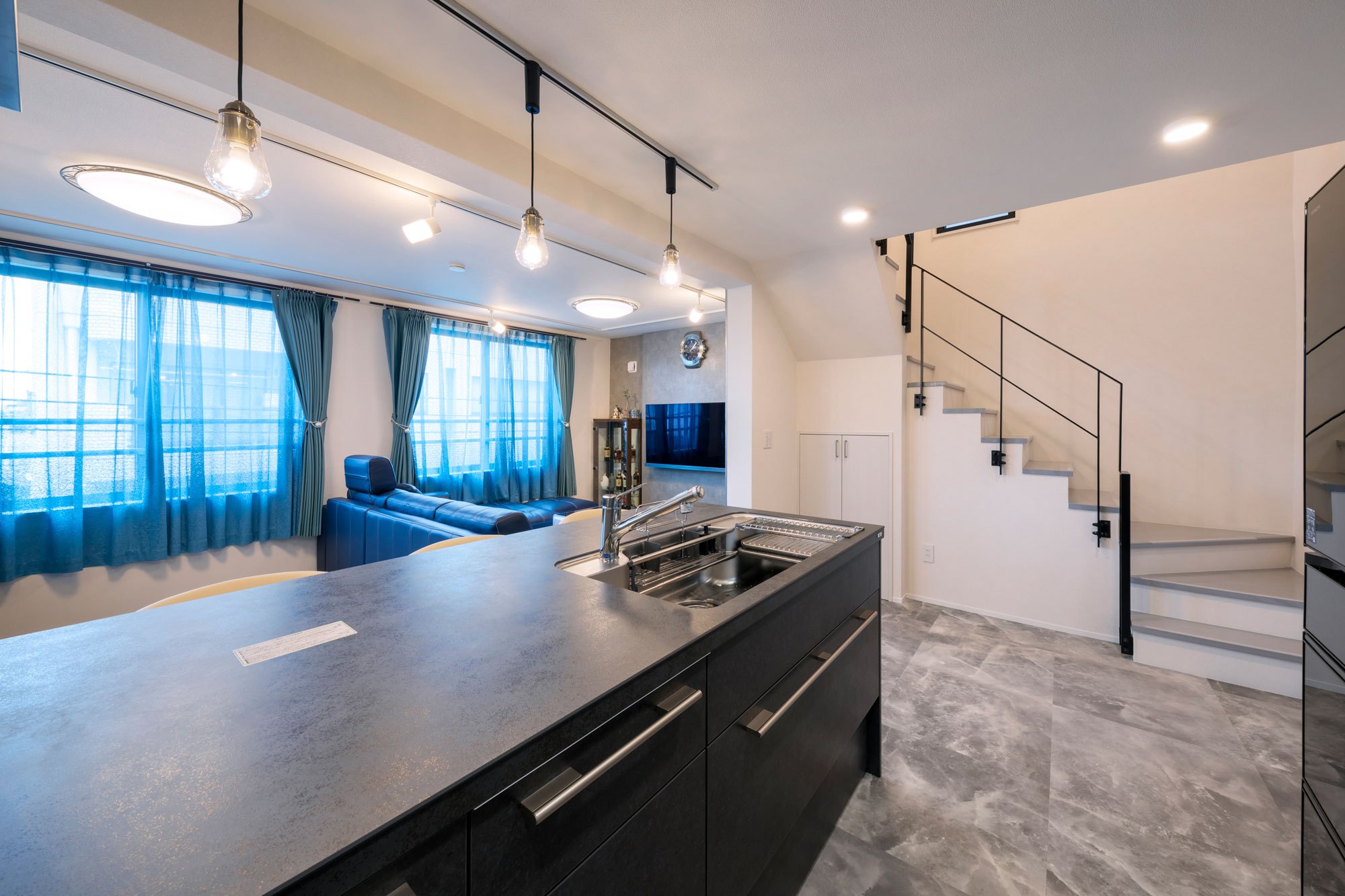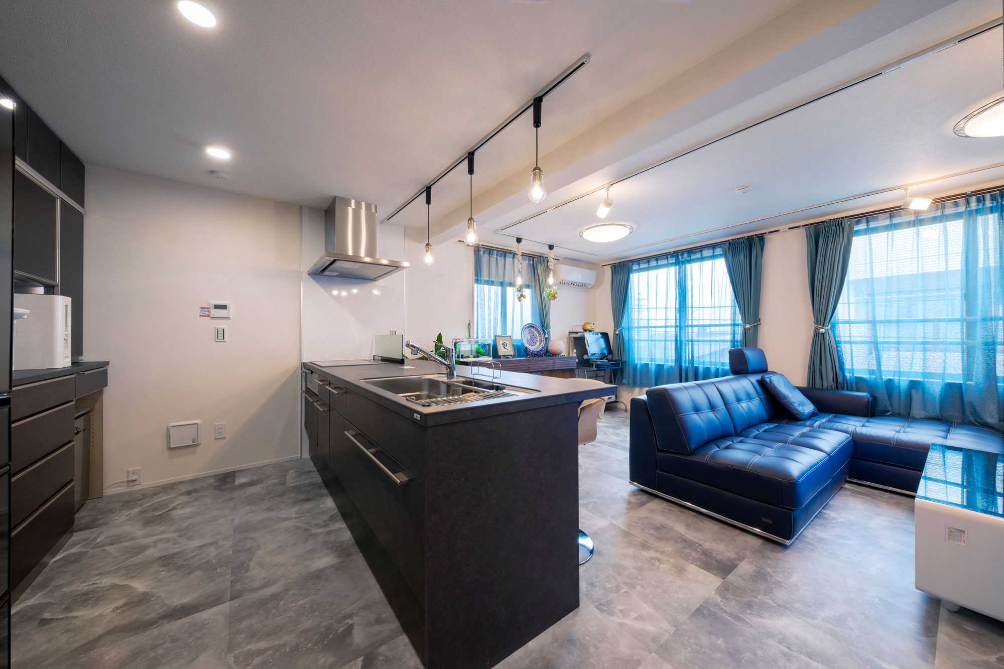 ・4階のLDKは広々とした空間。大理石調の床や間接照明で高級感を演出