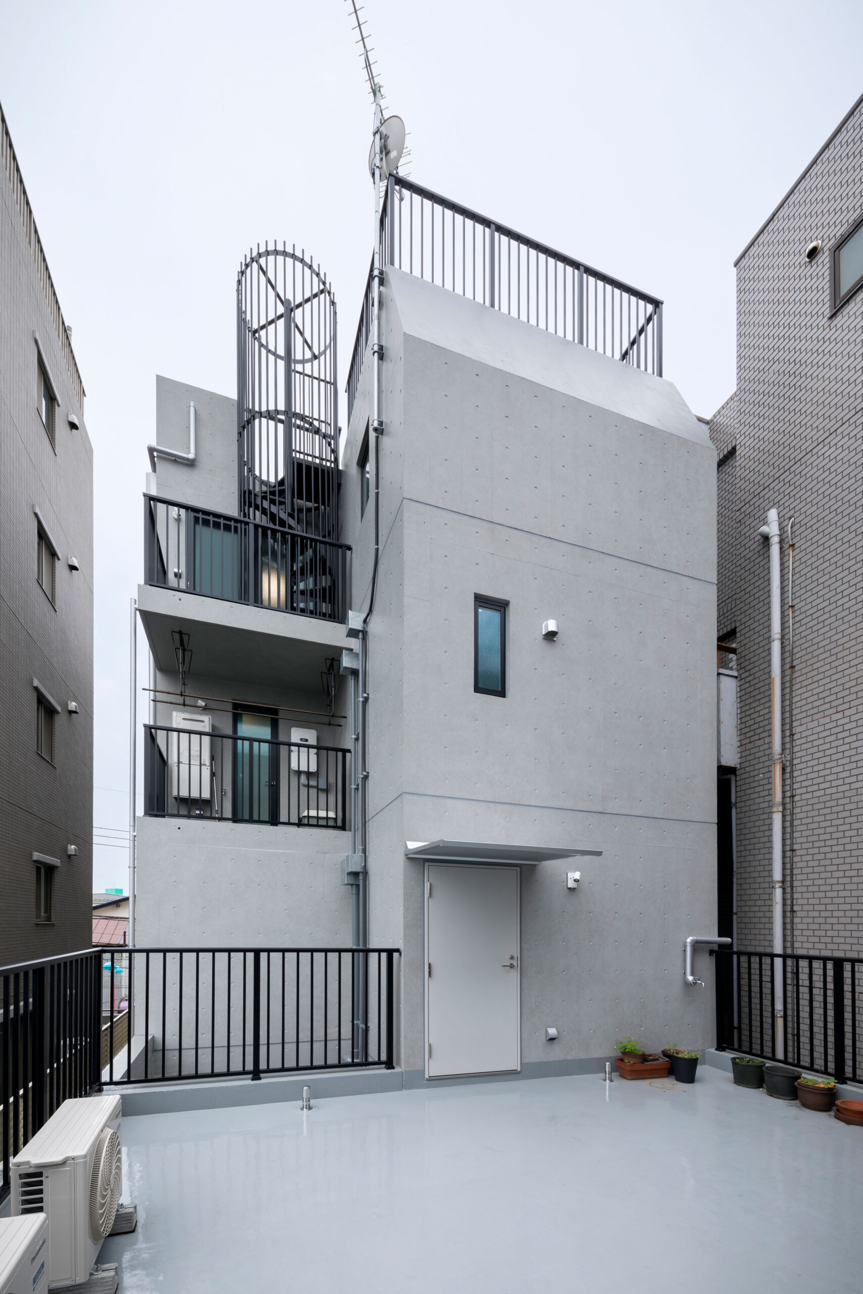 東京都江戸川区の住宅街に建つ、賃貸併用の5階建てRC住宅。