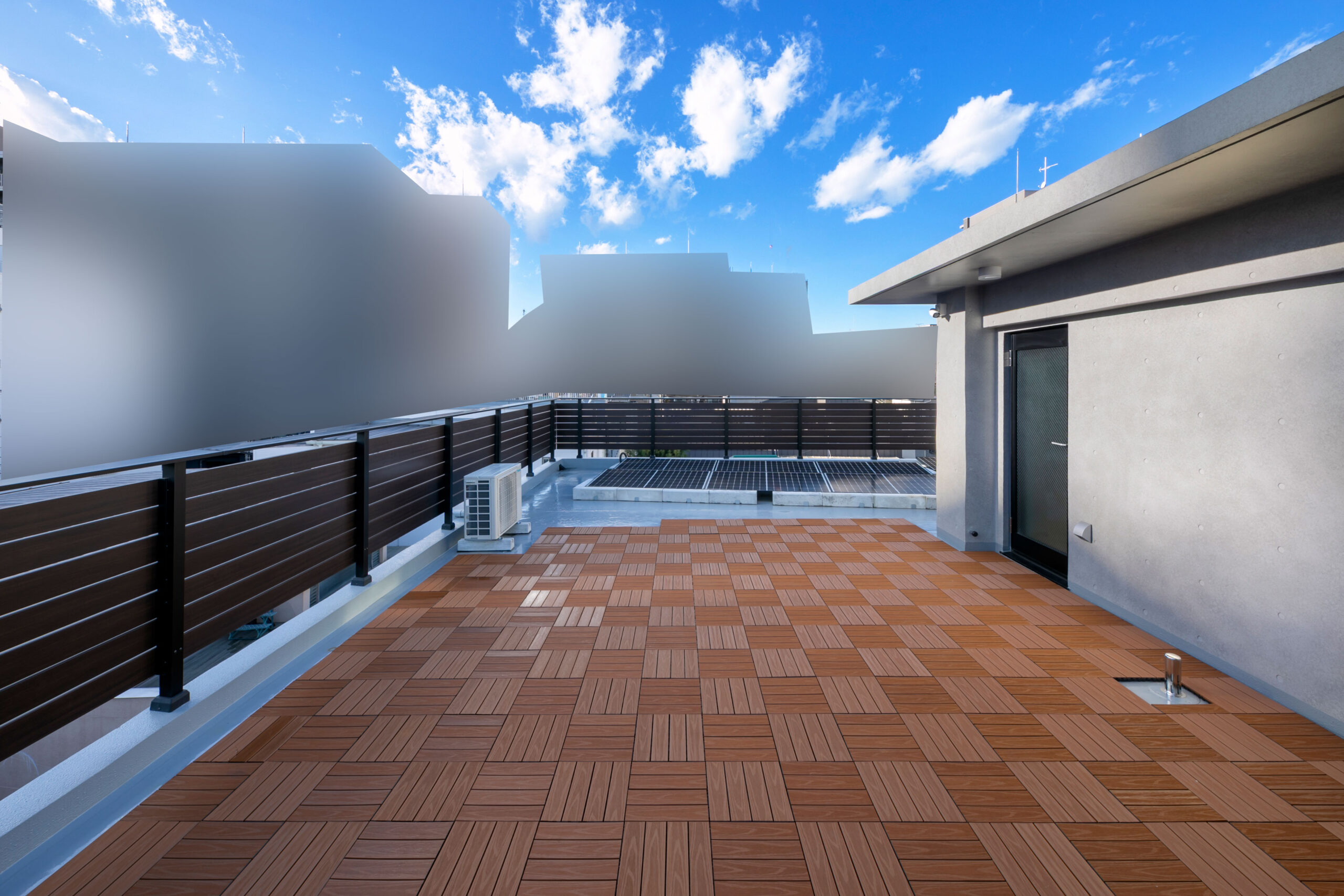 ・屋上には太陽光発電パネルも設置しエネファームとのW発電で省エネを追求。室内は、全館空調で一年中快適。デザインだけではなく快適さにもこだわったコンクリート住宅が完成しました