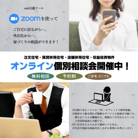 オンライン個別相談受付中(ご来場型個別相談会も受付中)!住まいづくりに関すること、RC住宅に関すること、賃貸マンション経営に関すること、お気軽にご相談ください。